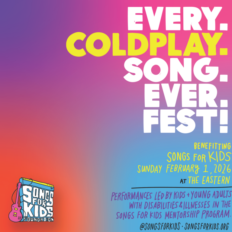 Join us at the Eastern starting at 10am on Sunday, February 1st! Can’t make it in person? Join the livestream below and consider a donation to support the amazing kids and young adults in the Songs For Kids music mentorship program!